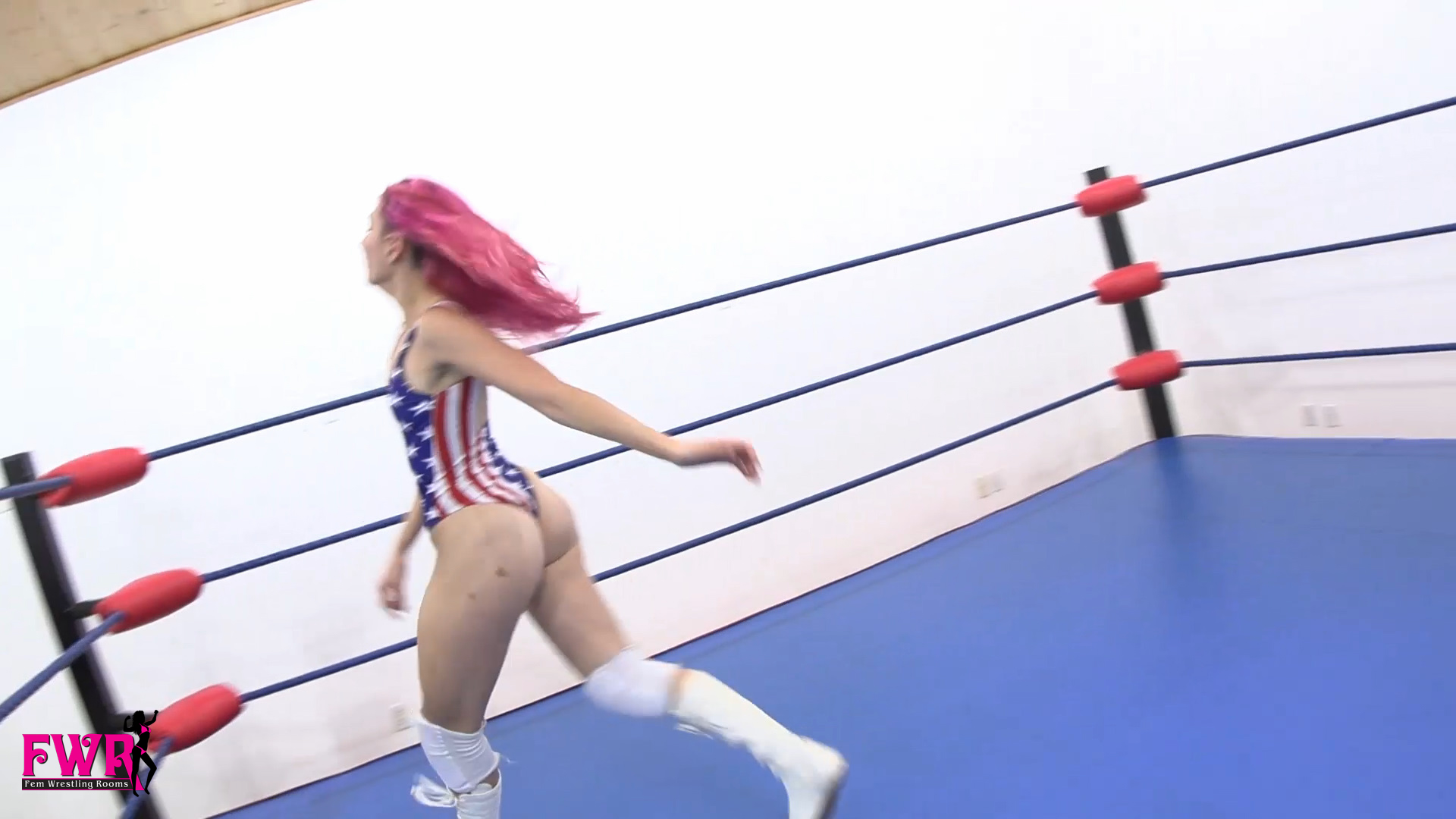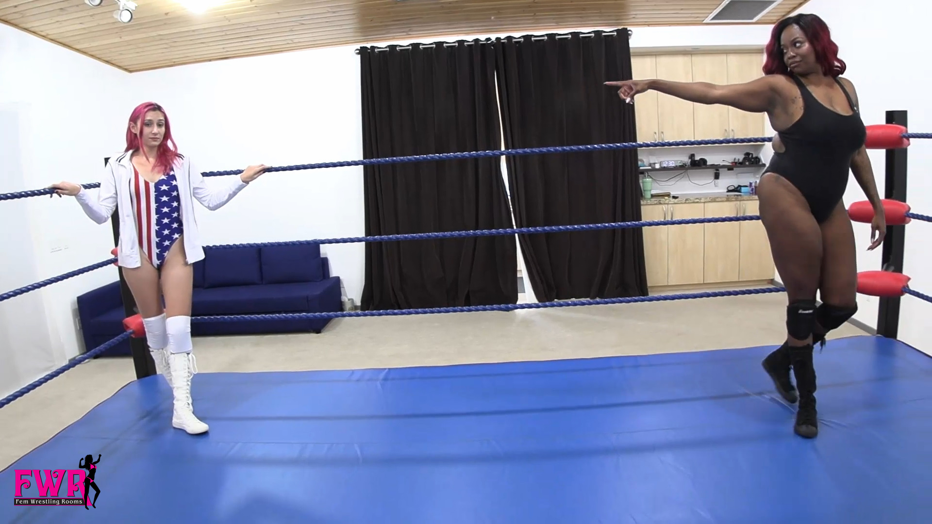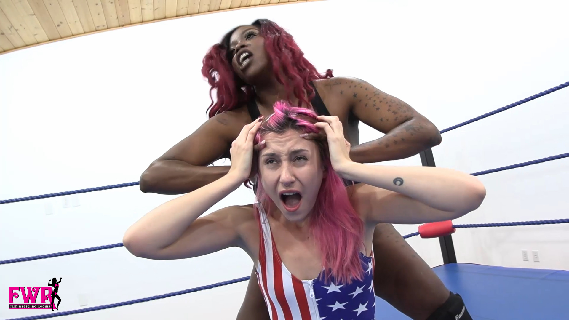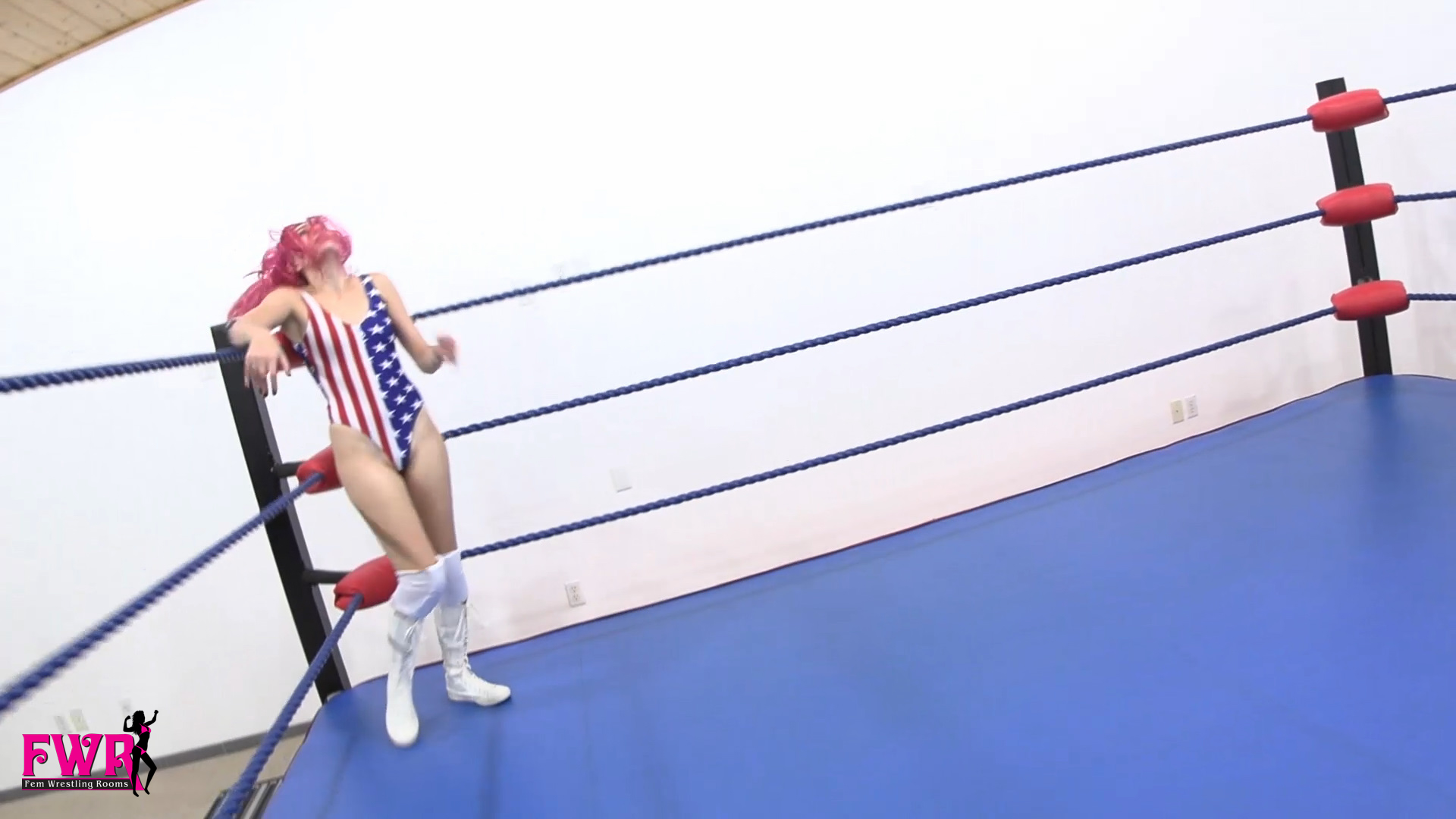 This custom video features Daisy as the All-American Girl, who hopes to “represent all that is good in pro wrestling.” She prepares herself with a pep talk in the dressing room, knowing that the match won’t be easy but hopes to wear her much larger opponent down because she stands “for truth, honor, and fair play!” So … off we go to the wrestling match and the TOTAL domination of the lovely Daisy. Stella whips sweet Daisy into the corners, claws her stomach, marches her around the ring in a headlock, Smashes her into the turnbuckles, carries her over the shoulder, and crushes her unconscious on a tight bearhug. Stella finishes the match by rolling the limp Daisy out of the ring and covering her with her ring jacket. Poor, sweet Daisy!!