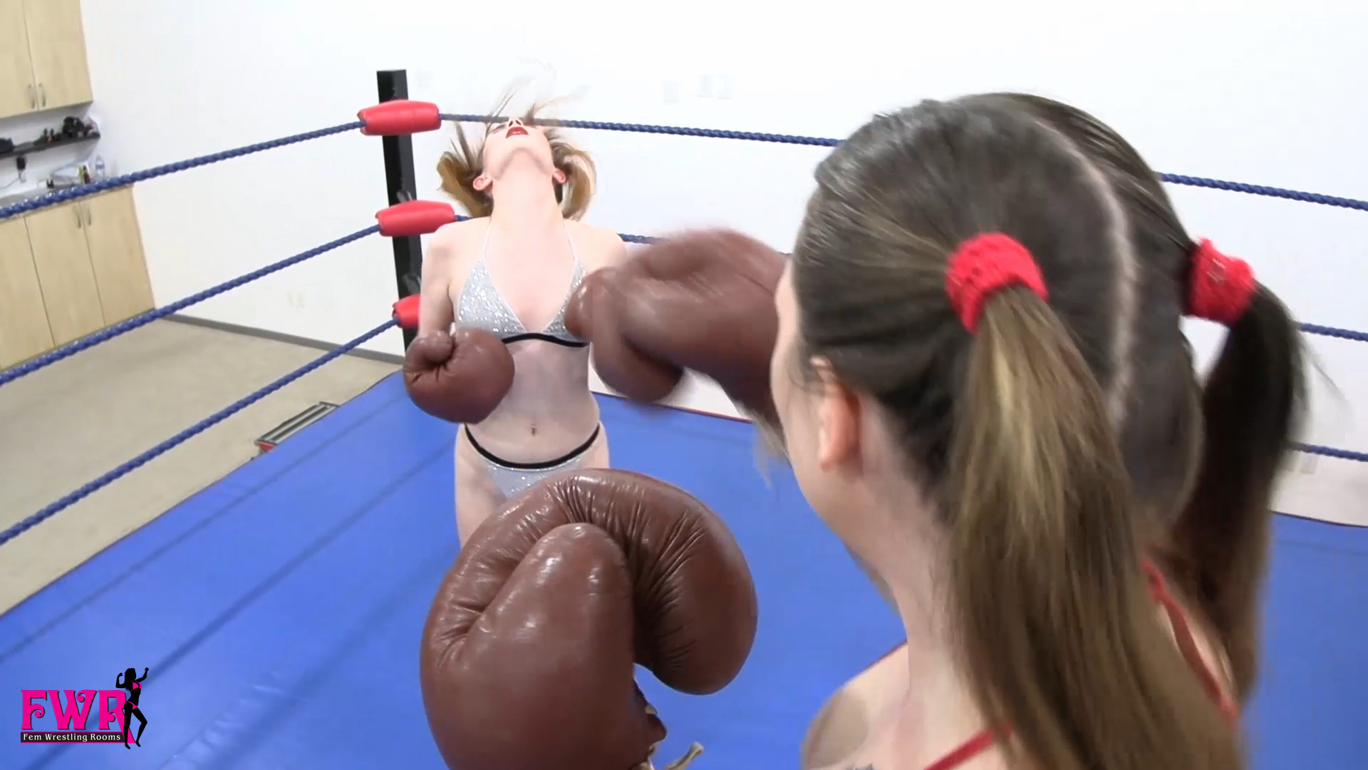 We open with Jackie meeting up with Lo in front of the ring. Jackie’s been upset that she hasn’t been part of Lo’s boxing matches so she challenges the much bigger woman. Lo is MORE than happy to accept! The boxing match begins and the little redhead tastes Lo’s hard jabs but manages to come back with her own punches that actually force Lo into a corner for a major beatdown! The match continues through the first round with Lo actually getting dropped, but she manages to work her way as the two girls trade jabs. Round two finds a very cocky and confident Jackie getting charged by the tough Lo and beaten for awhile. Just when you think that Jackie’s done for, she finds an inner strength and attacks! Lo is beaten to a pulp, dropped several times, and becomes a ragdoll as Jackie finishes her off with a variety of hard punches. Don’t miss this great boxing match.