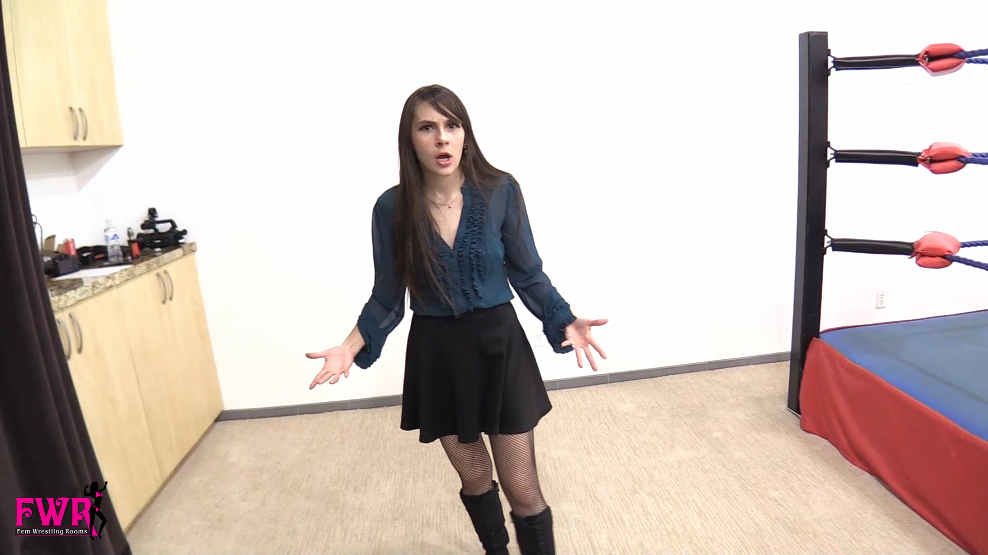 You enter the studio to find Ziva, dressed in a skirt, black fishnet pantyhose and boots, practicing her kicks. She sees you and invites you to watch. She uses sweeping kicks, straight kicks, jumping kicks, spinning kicks, and stomp kicks. After awhile, she gets bored and decides to use you as a target. It only takes a few kicks before you’re knocked to the floor where Ziva puts you in a reverse head scissor followed by a neck choke with her boots. She pulls you to your feet and continues kicking you. You drop again and experience another head scissor followed by some foot smothering. In the end, Ziva removes her fishnets and boots, places them on you and thanks you for helping her practice. This custom video is a specialized video and you’ll enjoy seeing Ziva in action.
