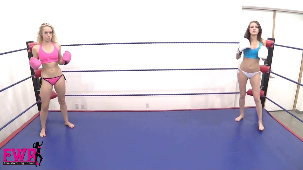 (Filmed on 1/24/2017) Two young beauties, Becca and Peyton, are dressed in sports bras, tiny bikini bottoms, and boxing gloves and stand in the corners of the ring. It's a known fact that they're very competitive and LOVE to fight each other whenever the chance arises! They're each given a mouthpiece for protection and the rules are explained. If a girl is knocked down she gets a 5 count to rise. The girl with the most knockouts in 15 minutes is declared the winner. The fight goes back and forth with each boxer slamming their gloves into their opponents face and belly. This match is brutal and contains several knockdowns and intense knockouts! The boxing gloves fly as they hit each other with all they have, going back and forth with each girl knocking each other out over and over again. Sometimes they get hit so hard that the mouthpieces fly or fall out of their mouths. As an added attraction the girls do a sexy foot on face victory pose when they win a round! Don't miss this awesome boxing match!