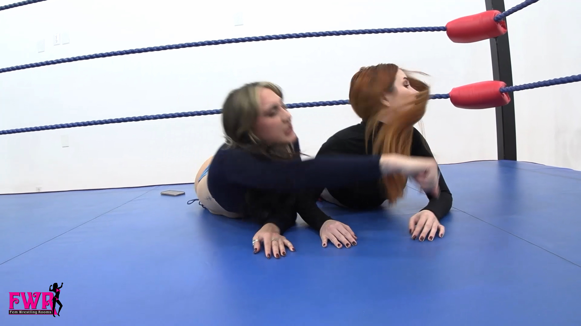 We fade in on Jackie and Mackenzi hanging out in the ring, looking at their phones. Both get a text from Teddy (our teddy bear star) who tells them he’ll go on a date with the winner of a knockout challenge. The excited girls stand and begin a lengthy session of knockouts including karate chops, tazer shocks, face punches, foot stomps to the head, foot pressure points, two over the shoulder carries, and lots of selfies. The custom video features several scenes with the girls in opposite roles as well as lots of barefoot shots. In the end, both girls get knocked out by Teddy as they lay on the couch in a final full foot shot with Teddy. You’ll love this fun video!