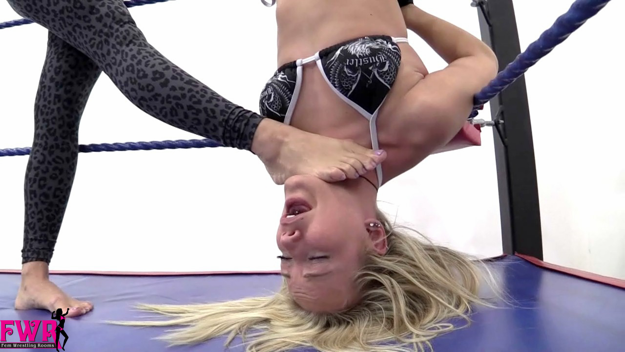(Filmed 11/20/2015) We fade in on Becca stretching outside the FWR ring, when out of nowhere LeAnn rushes in and drops the beautiful blond with a crushing low blow. LeAnn press her advantage delivering low blow after low blow to the surprised beauty, explaining that she’s here to get revenge for Becca torturing one of her friends in a previous match! LeAnn tosses Becca into the ring, strips her down to a tiny bikini, ties her hands behind her back, and begins an insurmountable torture session! LeAnn does every single submission hold in her repertoire that focuses on Becca’s toes, feet, legs and back, adding as much humiliation as possible along the way. Nearly every hold focuses on the complete destruction of poor Becca's thighs as LeAnn digs her fingers and nails into the fleshy meat of the blond girl's legs! This brutal session takes almost a full 30 mins and has Becca crying and pleading for mercy from the opening moments! Once LeAnn finally feels like Becca has truly learned her lesson, she spends just short of 3 minutes rubbing her feet in the sobbing Becca’s face just to insure that Becca is fully beaten and humiliated. Poor Becca!!