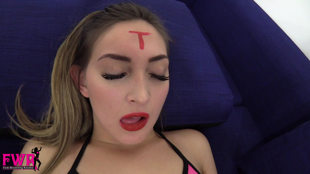 In this sequel to Mia’s first encounter with you, Mackenzi is seen applying her bright red lipstick in the dressing room mirror. She says “This one’s for you, sis!” and heads to the boxing ring. Your enter to find the hot beauty stripping out of her silk robe and revealing her sexy bikini top and schoolgirl skirt. The bell rings and she dodges and ducks your punches. Mackenzi plays the perfect “spoiled brat and cocky, arrogant” female as she teases and taunts you throughout your beat down. After a session of face punches, she uses her long shapely legs to high kick you all over the ring, finally dropping you. Mackenzi sits on you, applies her red lipstick, and gives you a goodnight kiss to take the first round victory. Round two includes tons of speedbag facials as our Hispanic beauty rocks your world to drop you again with an uppercut. When she sits on you to seal the match with a kiss you head butt her, knocking her out! She wakes up and is popped in the face by your boxing glove bringing an eye crossing, stars twirling final knockout. The ending, like the previous video, features the snoring beauty on the couch where you reveal the “T” on her forehead and the “K” – “O” on her cute bare soles. Enjoy!