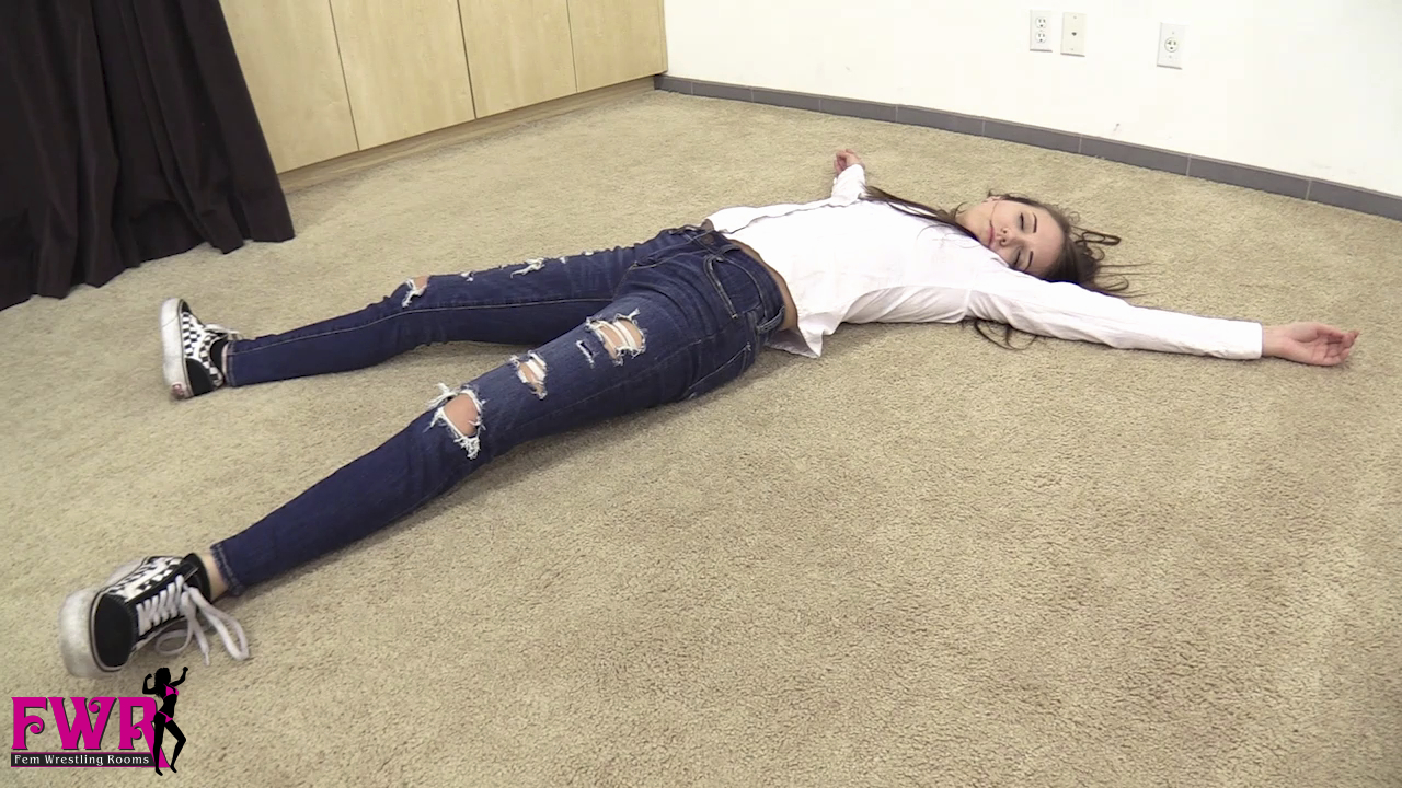 Peyton is seen sitting on the couch in her street clothes talking to her manager. When she finds out her next opponent is Mackenzi she looses it, calling the girl a skank and a bitch! But she doesn’t realize that Mackenzi is listening. Mackenzi, the ultra-beauty dressed to kill, suddenly emerges and knocks Peyton out with sleeping gas. Then the fun begins! Mackenzi destroys poor Peyton with kicks, stomps, punches, and some wrestling holds. Peyton is continually knocked out only to wake up to more beatings. Mackenzi finally ties binds Peyton’s wrists and ankles, gags her, and ties her to the ring post for added punches and kicks before knocking her out and writing “I’m Mackenzi’s Bitch” on her belly. The sultry beauty plants a kiss on Peyton’s lips and whispers in her ear, “I’m ready for a rematch whenever you decide to wake up, bitch!” You’ll LOVE this domination match!