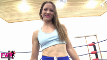 You’ve been a Division 1 college athlete but now work in an office. Still in great shape, you’ve decided to take up boxing and plan to show everyone at work that you can knock out anyone. Enter your coworker, Madison! Dressed in sexy sport shorts, sports bra, boxing boots, and pink boxing gloves, Madison waves at her friends as she enters the ring. She trash talks you a little and mentions that she’s been a professional boxer for years and LOVES to beat up pretentious assholes like you! The bell rings …. And keeps ringing in your head as the sexy beauty plows hard punches into you in a one-sided domination! She easily knocks you out early in the video and gloats with her boot on your chest. Then the fun begins! When you wake up you’re tied in the ropes as Madison informs you that she’s going to knock you out FIVE times in retaliation for the 5 coworkers you recently knocked out. We KNOW you’ll enjoy getting dominated by the boxing gloves of the lovely Madison!
