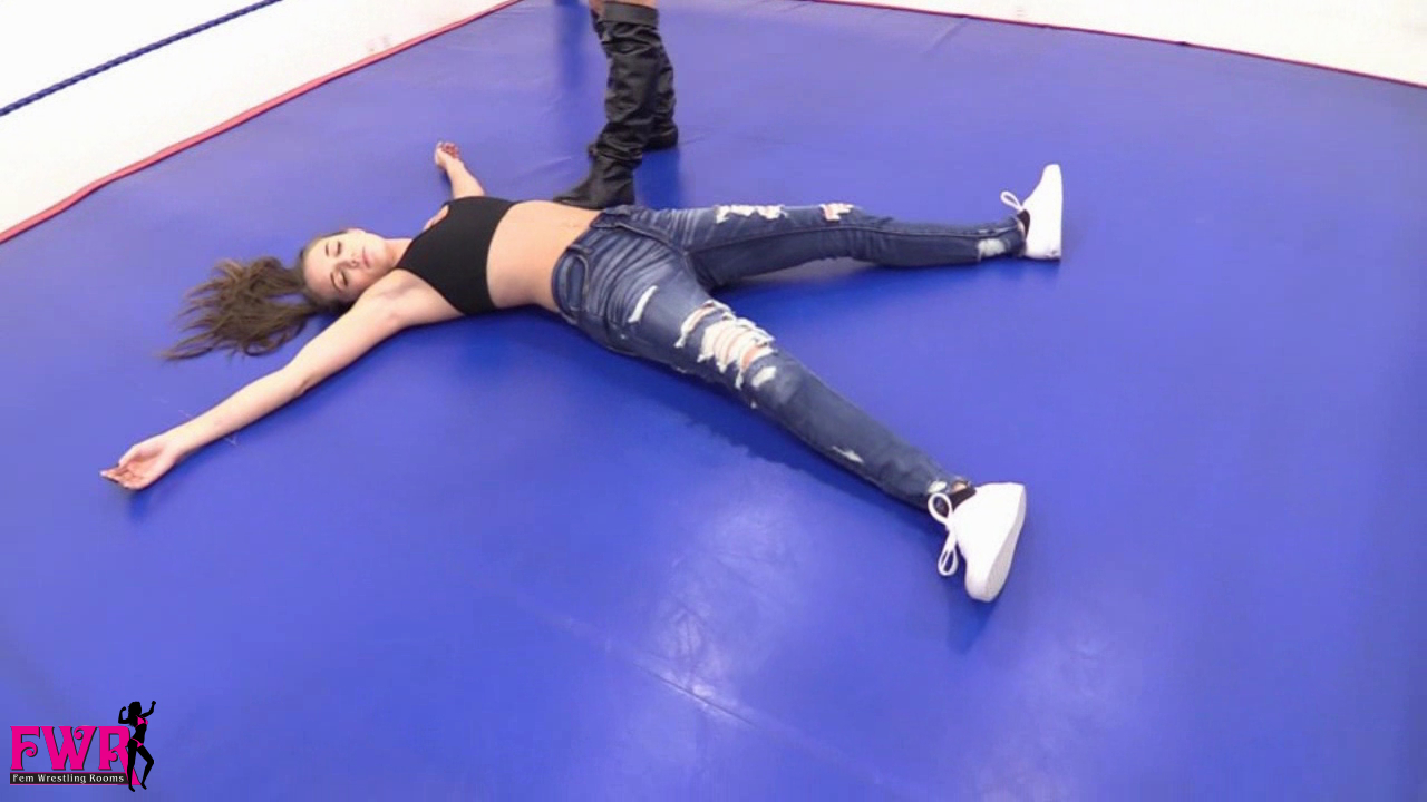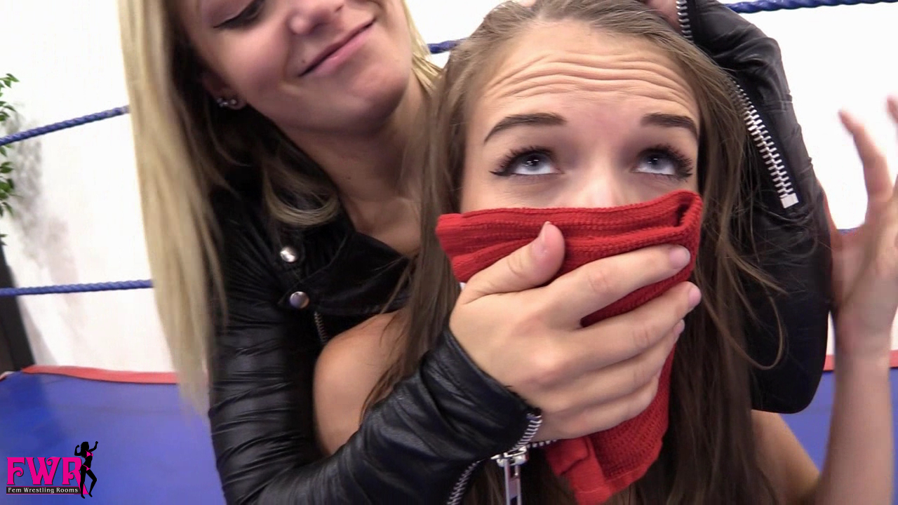 In this excellent custom video Peyton plays the part of a nerdy Brainiac who wears glasses and sports pigtails. But she’s a confident nerd who thinks of herself as a better fighter than anyone else! Enter Becca. Dressed in a sexy black leather one piece. The blond yanks Peyton to her feet by the hair and proceeds to kick her butt with punches, kicks, and low blows! She throws Peyton into the ring and continues the beating! A huge hook knocks Peyton out and Becca checks her limp arms and legs, removes her hoodie, and unties her pigtails. Peyton soon wakes up and pretends to apologize but when Becca comes close Peyton sucker punches her then gives the blond a taste of her own punchout medicine! A chloro filled rag knocks Becca out and Peyton returns to her reading. Becca wakes up and attacks again, this time beating Peyton over the head with her book then giving her more blows to knock her out. In the end, poor Peyton is tied up, gagged, and left with the words “Nerdy Girl” written in lipstick on her belly. We know that you’ll love this video!