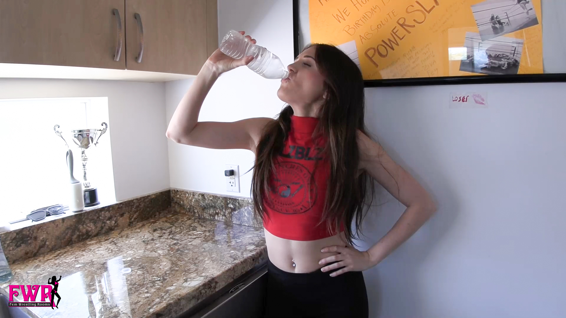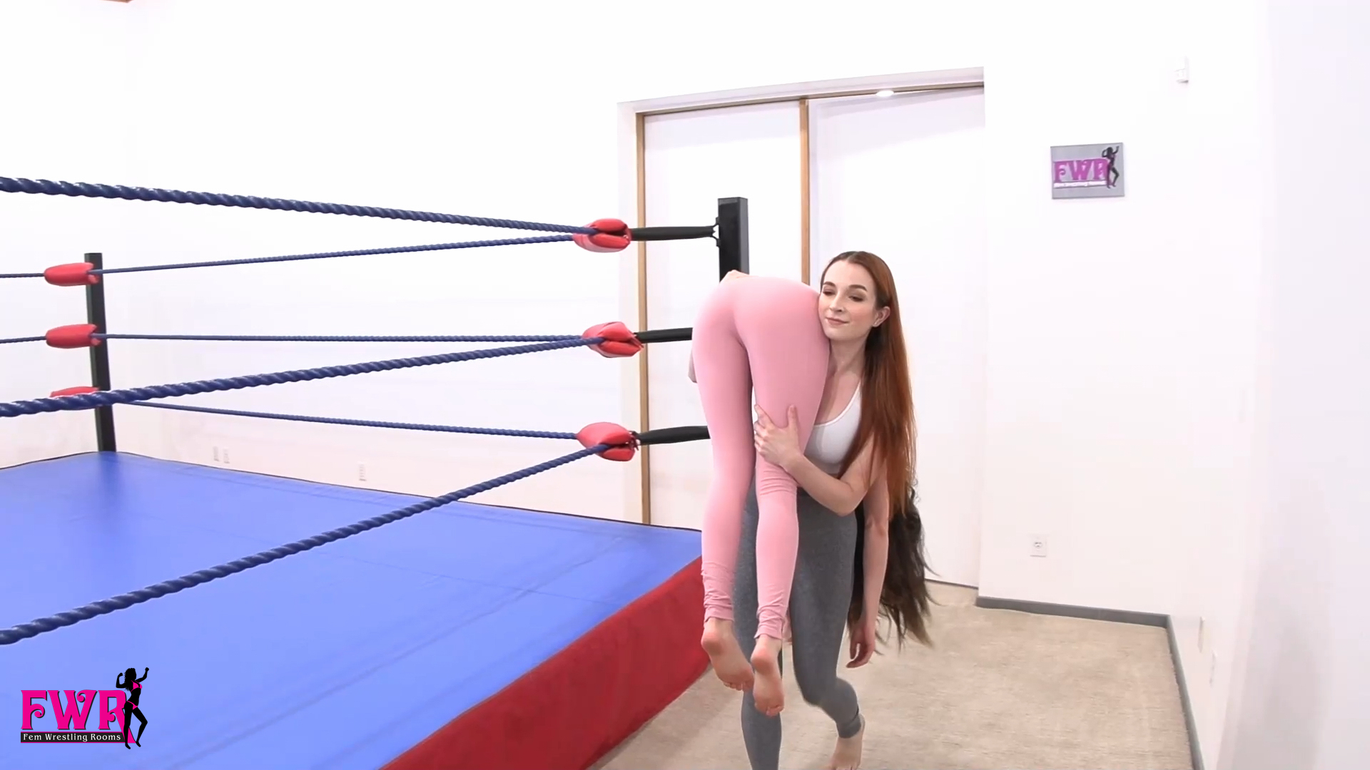 We fade in on a water bottle and see a mysterious hand drop a pill into it. Peyton enters later and drinks from the bottle and quickly faints. Jackie enters, happy about the result and carries Peyton to the ring where a camera is set up in the corner to record Jackie showing off her trophy. However, Peyton wakes up and soon knocks Jackie out with a sleeper. At this point, the main focus of this custom video begins and features one girl sitting the other girl on her knee to show off to the camera that’s recording them. The knockouts go back and forth until the girls get into a wrestling fight. More knockouts and poses happen until Jackie wins the battle and takes Peyton over her shoulder to the dressing room where she changes her into a pink outfit to humiliated her some more. But at this point, your humble producer steps in and more fun happens. I’ve got to admit that this script is hard to describe but there’s lots of carries, wrestling, and knockouts and we think you’ll enjoy it.
