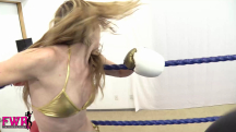 If you recall, you met Madison in the boxing ring and she gave you a good beating (see “Three Rounds with Madison”). You’ve asked for a rematch and now stand in the ring awaiting the lovely woman. She enters wearing a stunning gold bikini and the match begins. Madison quickly gets the better of you, dropping you twice in round one. In the second round Madison gets too cocky and opens herself up for your hard hook that drops her to her butt. She shakes it off but you continue to dominate the round. The final round is filled with back and forth action as both of you taste the mat, but in the end you over power the beauty and three powerful uppercuts finds her knocked out on her feet. A spectacular drop to the mat and 10 count gives you the victory!
