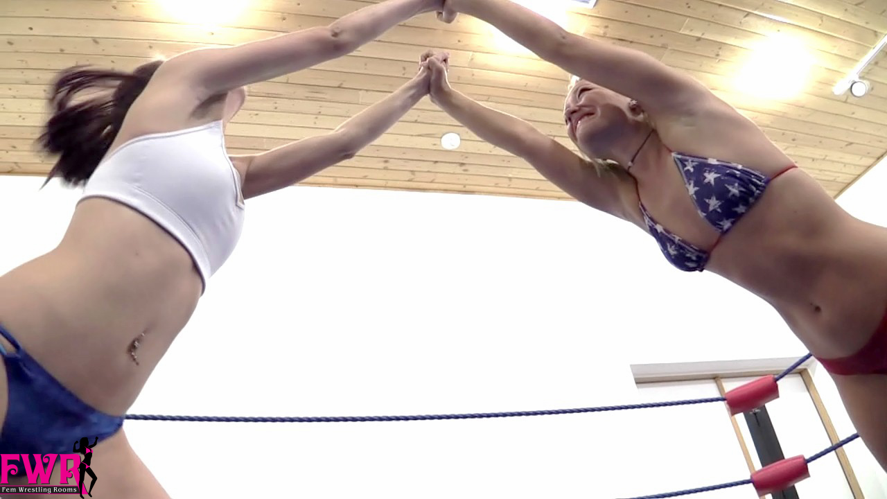 (Filmed 12/5/2015) This custom video features something for EVERYONE! Long prematch stare downs, boxing, a lengthy test of strength contest, wrestling, and long victory poses! Peyton and Becca begin each of the three matches with a lengthy nose to nose stare down while they trash talk each other. The boxing match is pretty even with both girls delivering face and belly crunching punches but Peyton manages to weaken Becca enough to slam her in the chin with a knock out uppercut. The lithe beauty then does several victory poses over her unconscious opponent. Part two begins with another stare down and trash talk session then the girls do a test of strength with the loser being the first one forced to her knees! It's pretty even with both girls grunting and groaning but Peyton simply doesn't have the upper body strength and loses. She's then forced to endure Becca's victory poses over her for a long time. Part three also begins with the stare down as Peyton makes the challenge to have a wrestling match. The two beauties REALLY go at it, knowing that the winner of this section will win the overall match! You'll see a leg split, snap mare, single and double reverse head scissors, a figure four leg lock, torture rack, and final sleeper hold that clearly leaves one girl defeated and the other enjoying her lengthy final victory pose! You'll LOVE this match!